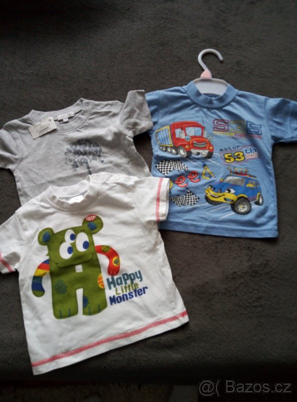 Prodám dětské trika 3 ks pro dítě od 3 do 8mes,trika jsou nové, cena modrého 85kc, cena šedého 65kc a cena bílého 55kc