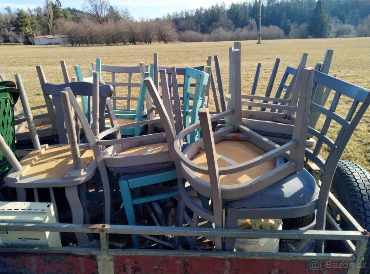 staré židle, skříňka, výlezák