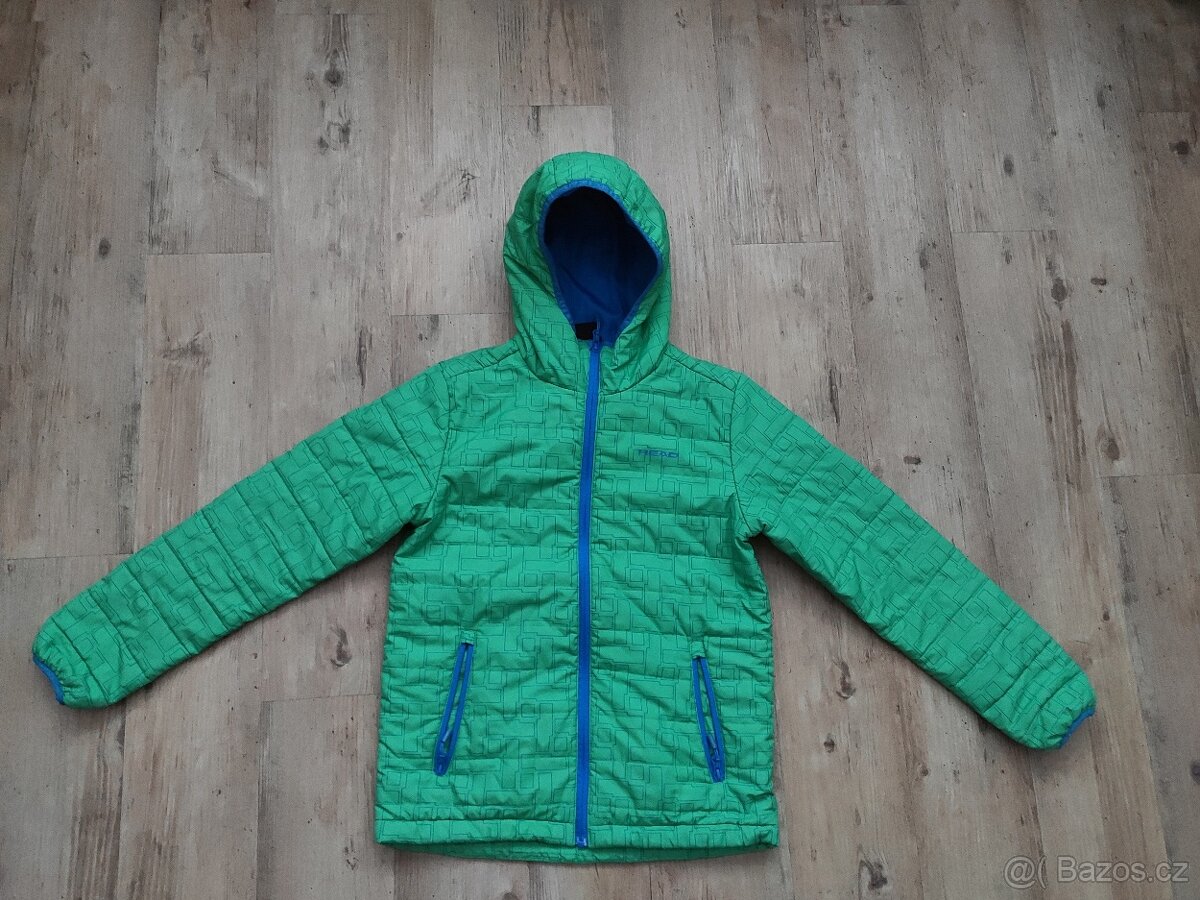 Dětská bunda Tchibo vel. 122/128 - [4.2. 2026]Dětská bunda Tchibo vel. 122/128, jarní/podzimní, šusťáková s náplaty, kapuce srolovatelná do límce, dobrý stav viz foto.