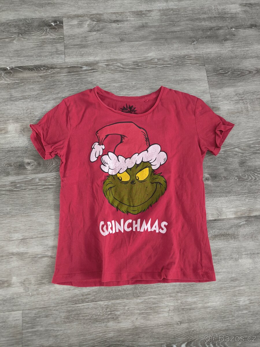 Prodám tričko,Grinch, obrázek trochu popraskaný, velikost odpovídá tak 128