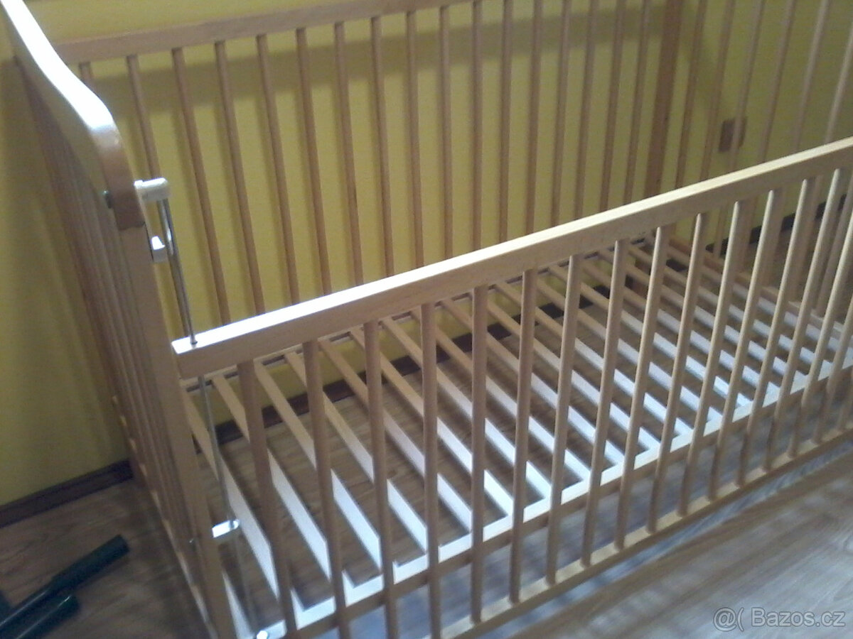 Dětská postýlka vel. 140x70 - [9.2. 2026]Stav viz foto. Stabilní, kvalitní postýlka z masivu. Včetně matrace a povlečení viz foto. Dá se rozložit na postel bez zábran. Nyní v rozloženém stavu. Osobní předání Prostějov.