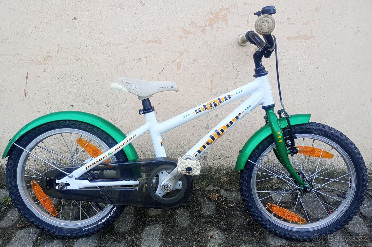 Prodám dětské kolo Author Stylo 16" bílo-zelené. Kolo má lehký hliníkový rám (velikost 8,5"), hliníková řidítka, představec i sedlovku, kola velikosti 16", kryt řetězu, odrazky, zvonek, blatníky, v případě zájmu přidám přídavná postraní kolečka. Kolo je plně funkční, lze na něm okamžitě odjet. Preferuji osobní převzetí na Praze 5 Smíchov. Inzerát platí do smazání.