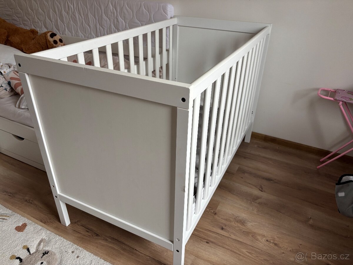 Dětská postýlka z ikey, která se může dat do třech poloh.