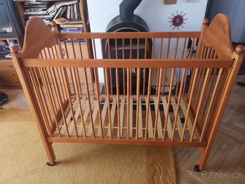 Dětská postýlka z masívu dub, rozměry 63 x 125, málo používaná, původní cena 5000 kč