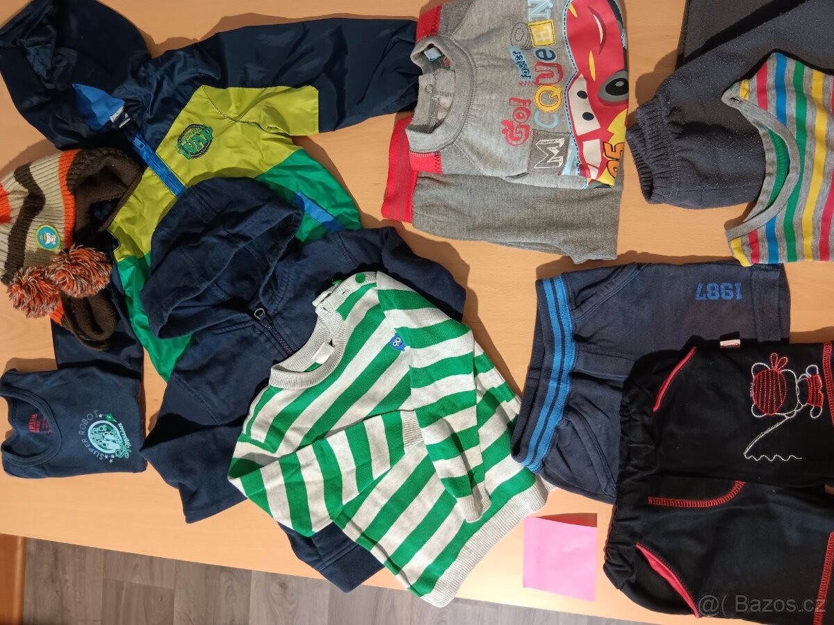 1xšusťáková bunda, 1xčepice, 1xtílko, 1xmikina, 1xsvetřík, 1xtepláková souprava MC-QUEEN, 2xšortky, 1xtriko dl.rukáv, 1x tepláky.