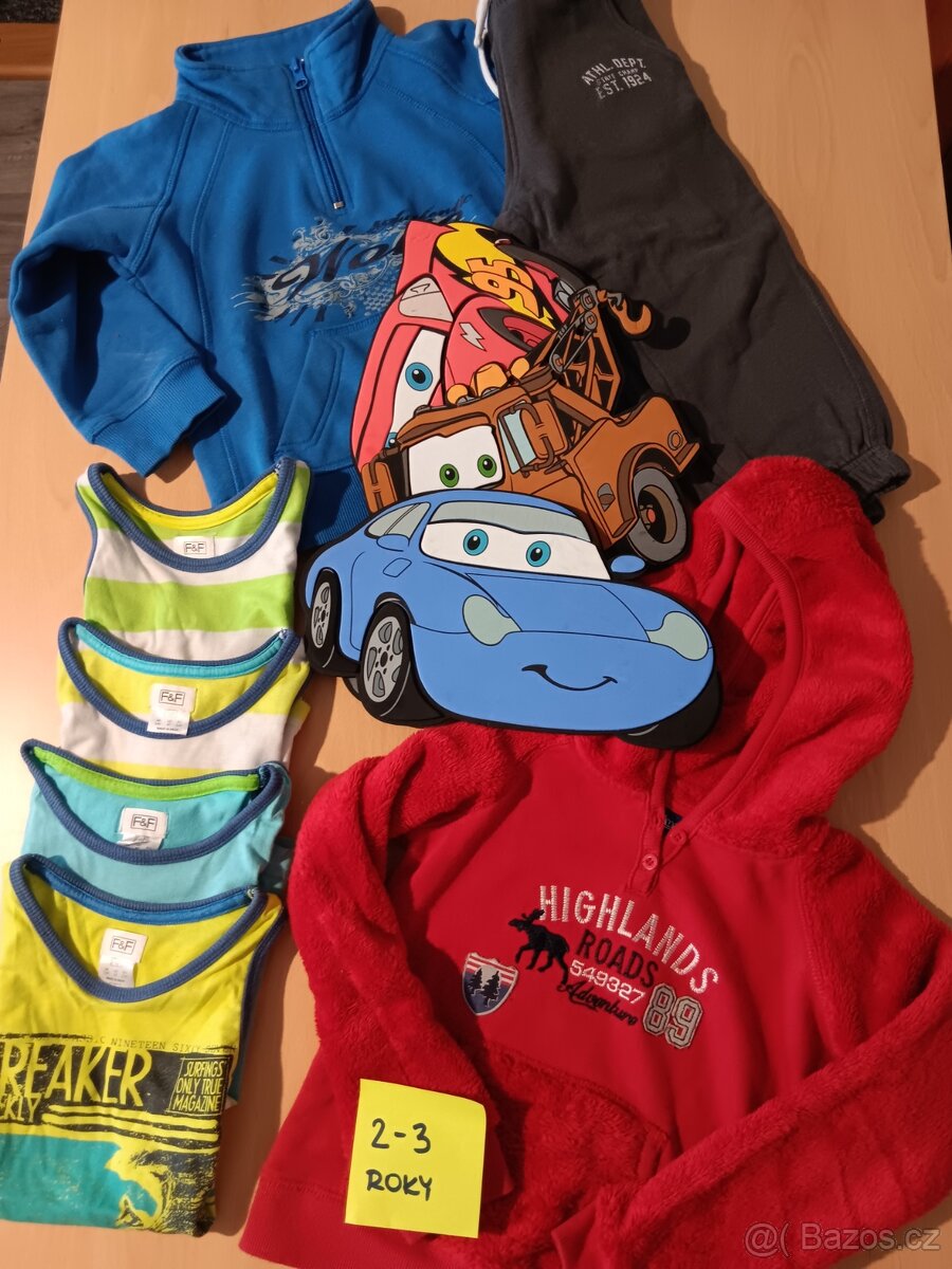 4x tílko, 2x mikina,1x tepláky a přidám 3x auta- obrázky třeba na nabytek x na hraní.