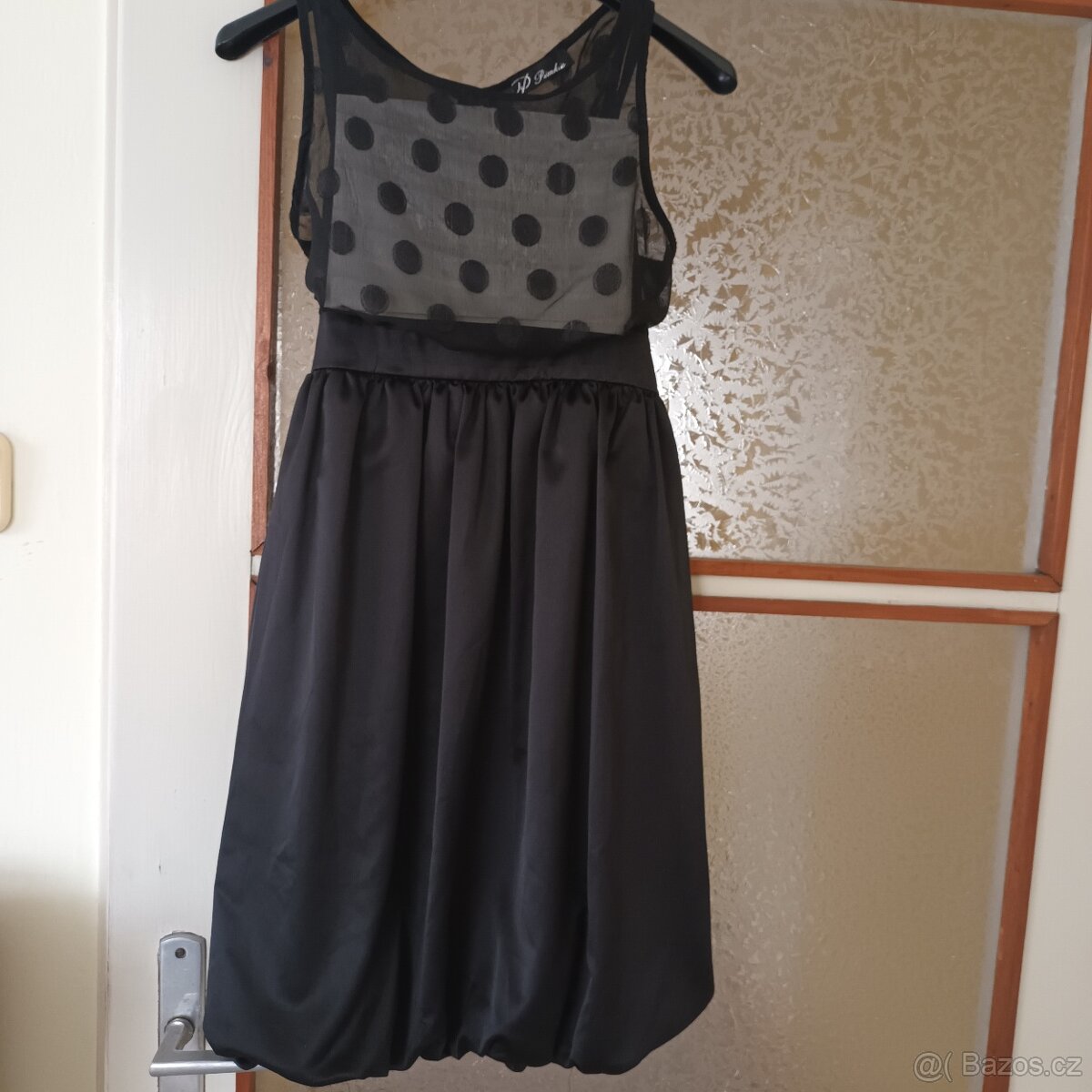 Vypodšívkované,horní díl je zdoben tylem s puntíky.Pas 70cm,délka 80cm.Vzadu zip a mašle.Dole staženo nepatrně do gumičky,dělá to takové vajíčko a pěkné řasení.Využívali jsme na předehràvky,do divadla i na společenské akce ve škole.