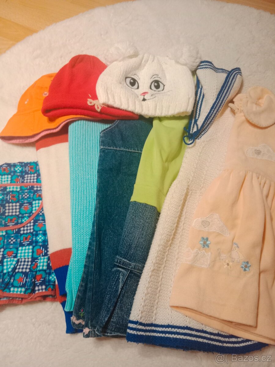 Různé oblečení pro holčičku, svetry,zástěrka,čepice,šatičky.