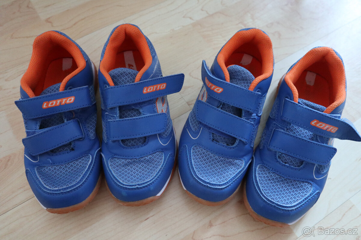 Prodám dvoje chlapecké boty vel. 32, nošené jen do tělocvičny, délka stélky 20,5 cm, značka Loto, suché zipy v pořádku. Cena za jeden pár. Cena + pošta dle tarifu ČP nebo osobní odběr v Rokycanech nebo v Plzni.