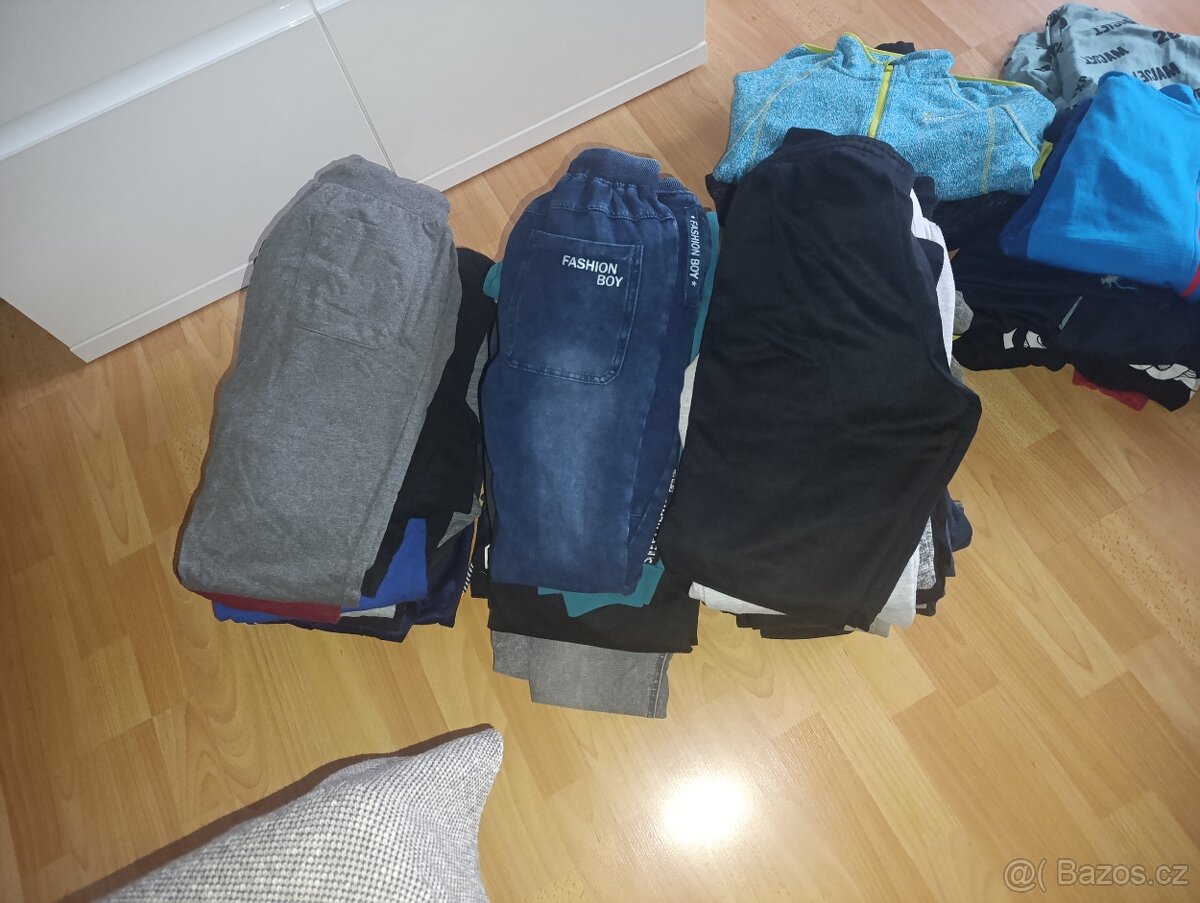 Dobrý den. Prodám oblečení po synovi. Převážně značkové, zachovalé. Asi 15 ks kalhot po 100 Kč. Asi 10 ks mikin po 300,200 ks.Velikost 158 - 164.