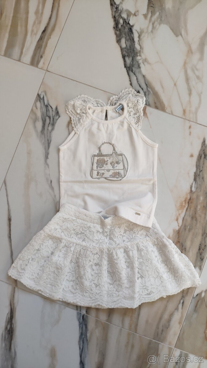 Komplet sukýnky a trika od firmy Mayoral. Velmi zachovalý komplet. Velikost 104. Zásilkovna 79,-kč.