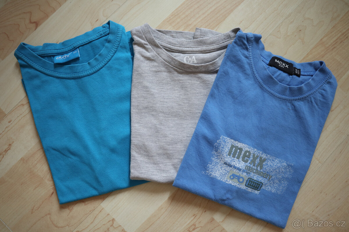 Prodám chlapecká trika vel. 122. šedé jen vyprané, CaA, délka 47 cm, v pořádku bez děr a fleků, nošené málo. Cena za vše. Osobní odběr je možný v Rokycanech nebo v Plzni.