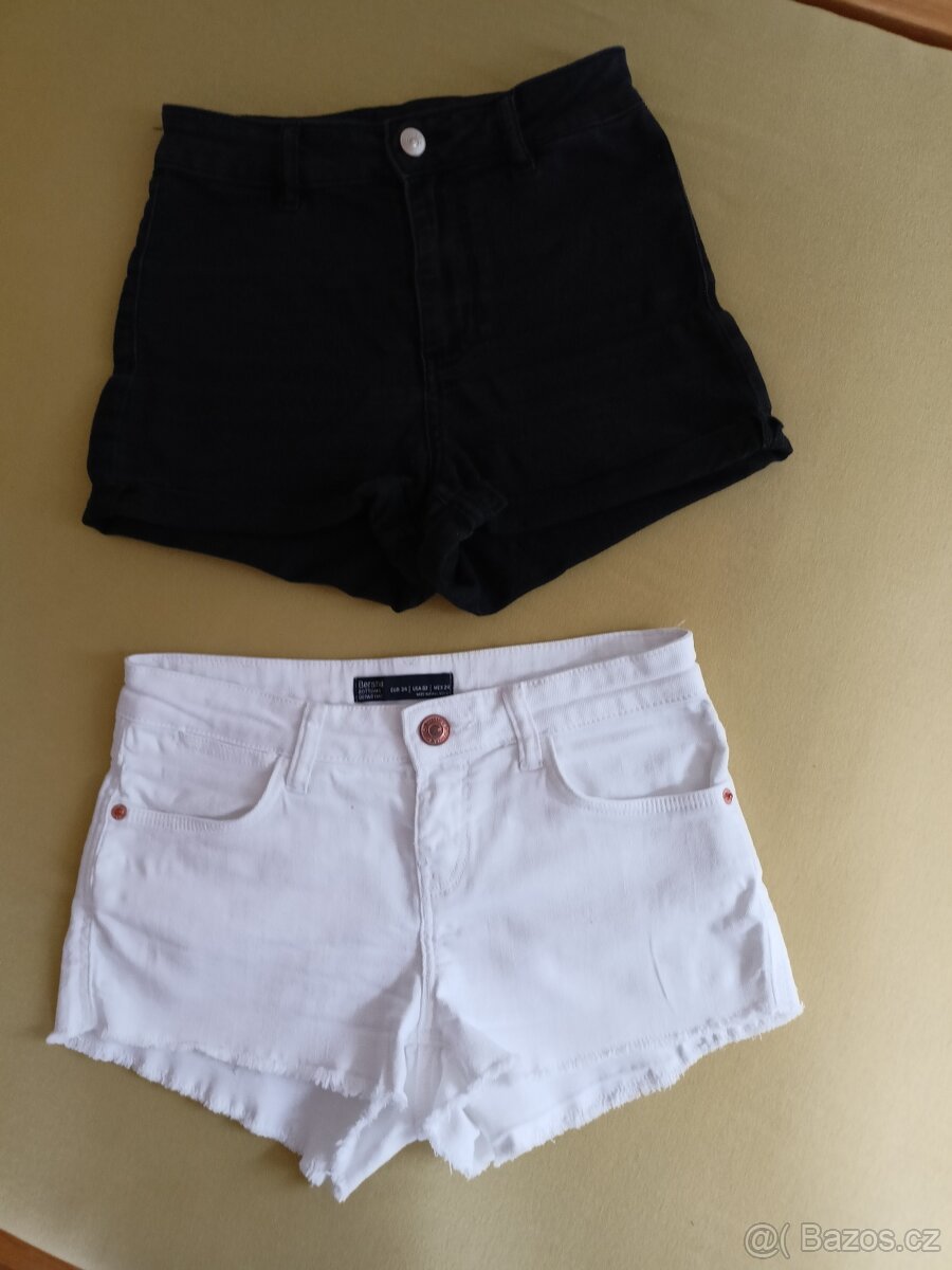 Prodám dvoje dívčí šortky, vel. 34, mat. bavlna. Bílé-délka 23 cm, pas 32 cm. Černé-délka 27 cm, pas 30 cm. Cena 25,- Kč/kus + poštovné, platba na účet.