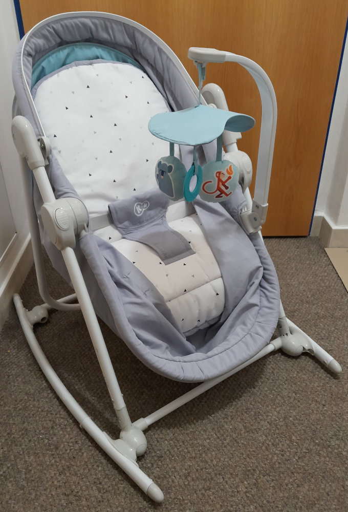 Dětská židlička/lehátko KINDERKRAFT UNIMO 5v1 v zachovalém stavu. Poslouží jako kolébka, postýlka, lehátko, houpačka a židlička. Pro děti od narození až do 18 kg. Ve složeném stavu zabírá málo místa. Součástí je hrazdička s hračkami. Cena 990 Kč.