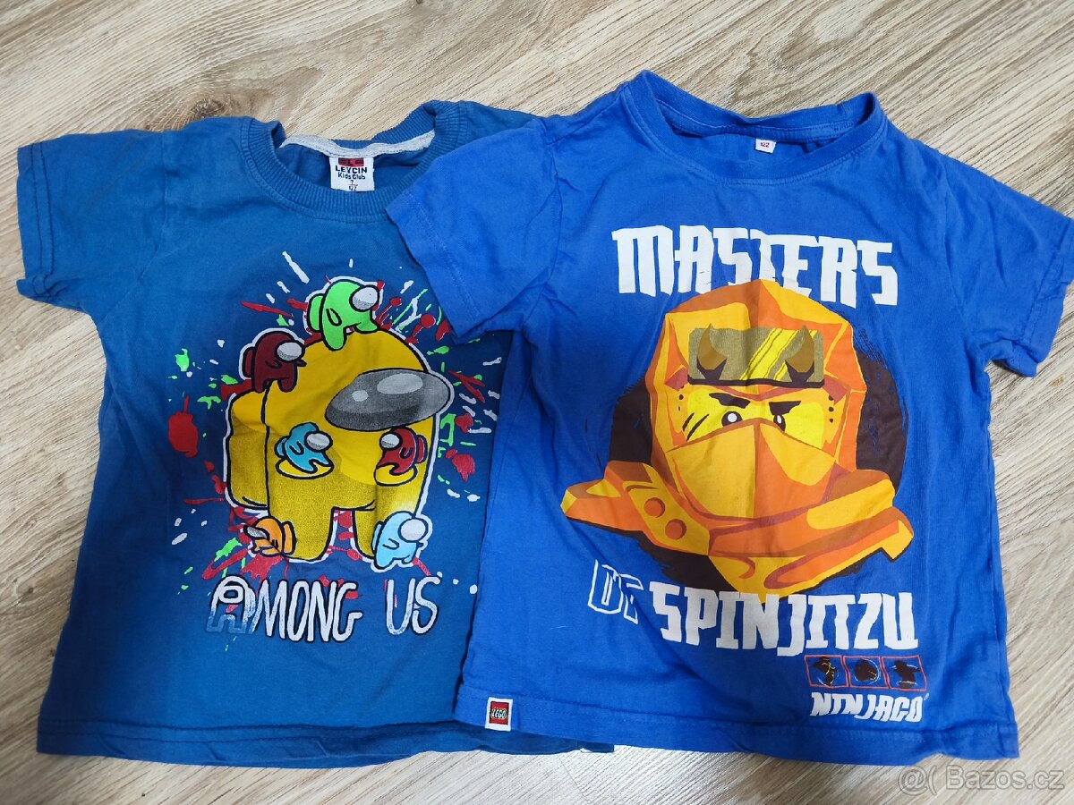 Prodám samostatně nebo do hromady.tricka 9ks 50kc.teplaky 4ks 50kc.mikiny4ks 50kc.oteplovaky 1ks 90kc.boty 1ks Nike 33,5. 100kc.velikost oblečení 128.je to po Synovi nosil to asi 3 měsíce už to má krátké.