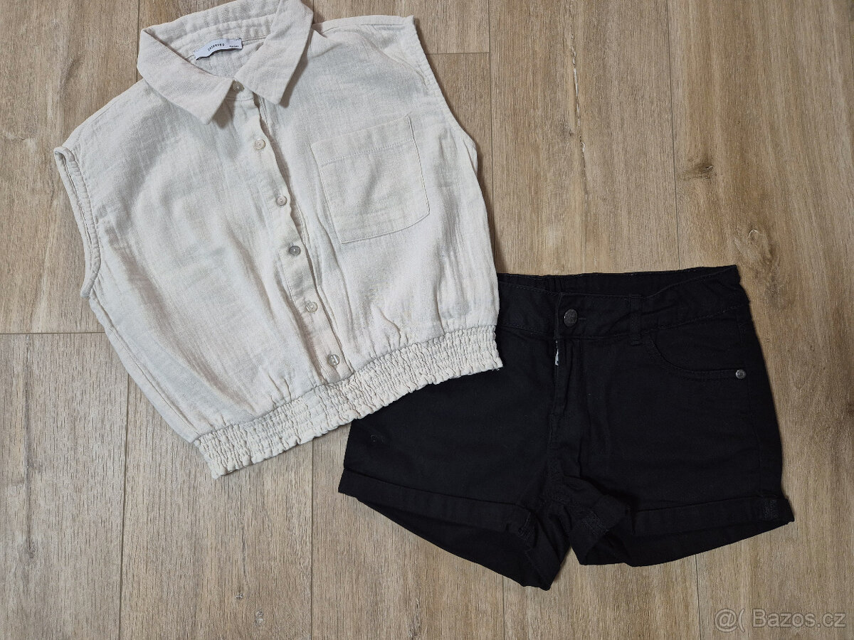 Prodám top s řasením z Reservedu a kraťasy z Takka, obojí odpovídá vel. 146-152, top stav. Odběr Brno nebo poštovné 30 Kč.