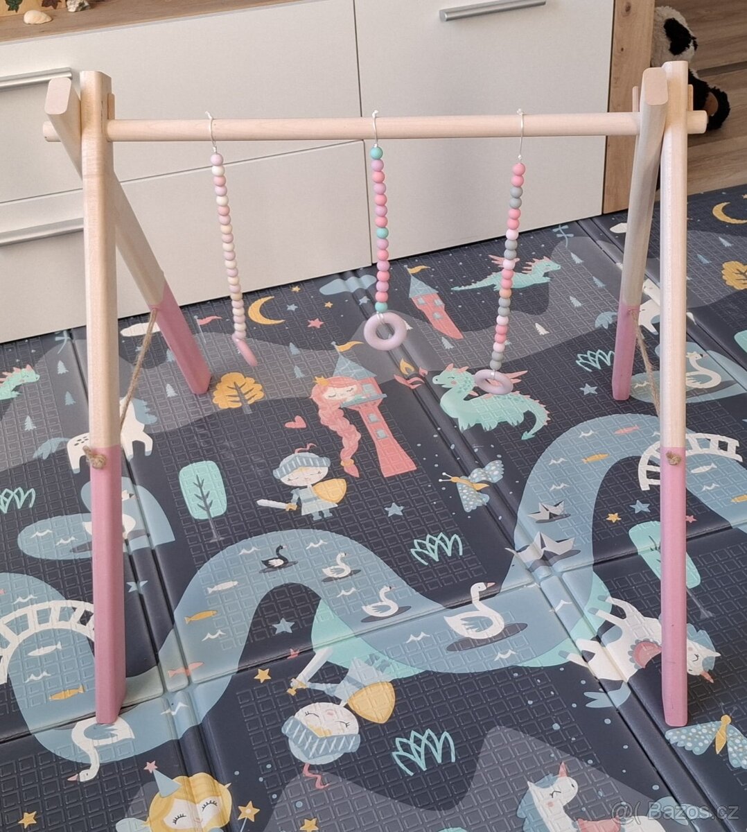 Hrazda minimálně použitá, na pár místech škrábnutá barva. Přívěsky doma vyrobené ze silikonových korálků, lze sundat. Cena 200Kč.
