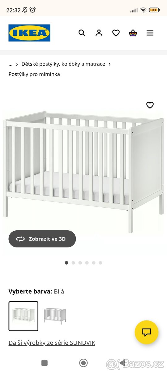 Prodáme IKEA postýlku , bílá, 60x120 cm včetně matrace, v pěkném, neponičeném stavu
