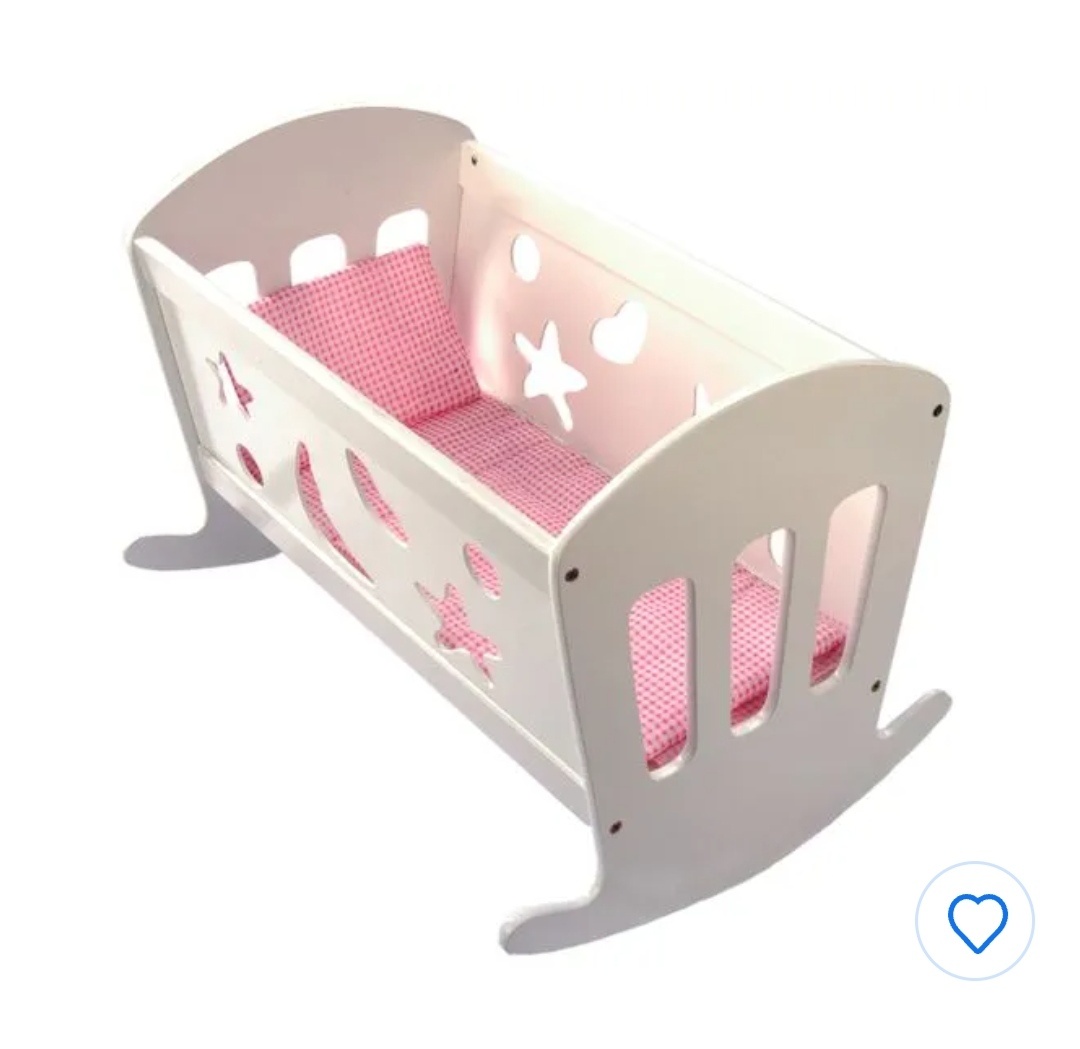 Klasická dřevěná kolébka pro panenky. Je vyrobena z přírodního materiálu s decentními vyřezávanými aplikacemi na bocích. Součástí kolébky je také peřinka pro panenku.