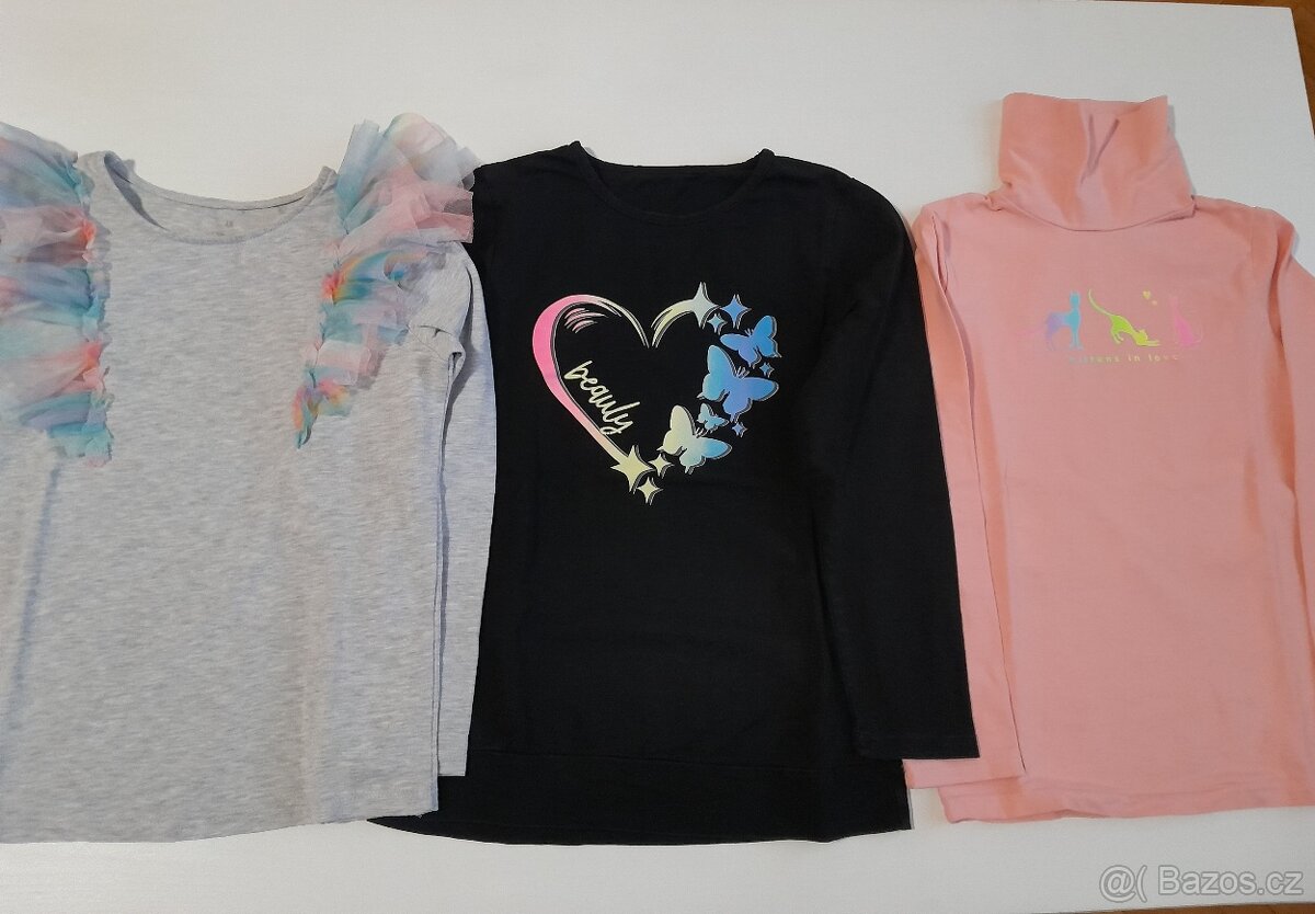 Prodám dívčí triko s dlouhým rukávem velikost 134.Značka Kugo a H&M.Bez dírek a flíčků.Cena 100,-Kč za kus.Možno i jednotlivě.Mohu zaslat přes Balíkovnu nebo osobní převzetí v Litoměřicích.