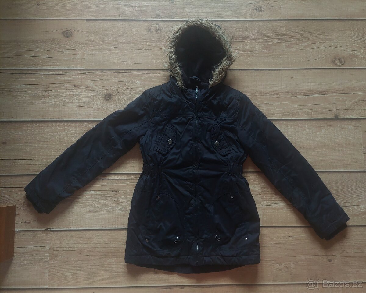 Prodám dívčí černou bundu uvnitř s fleecem. Zašitá nahoře u kapsy viz foto. Službu ještě udělá.