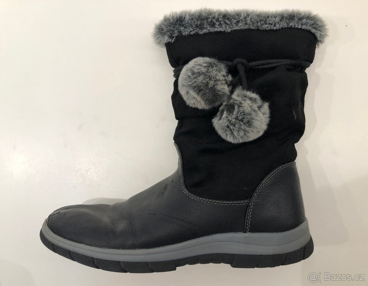 Vnitřní stélka naměřená asi 23cm (vložka nejde vyndat). Nošené, ale ještě poslouží. Uvnitř kožíšek. Na špičkách drobné vady, viz foto.