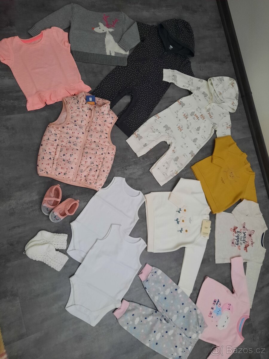 Setík pro holčičku, vel. 12-18 měsíců - [15.12. 2025]Dva overálky Old Navy, nové, svetřík Gap, nový, růžové tričko Primark, párkrát vzaté, béžové tričko Primark, nové, růžové legíny Next (na kolenou flíček viz poslední foto), body F&F, párkrát vzaté, botičky Primark a pyžamko Primark, nošené, vše vel. ...