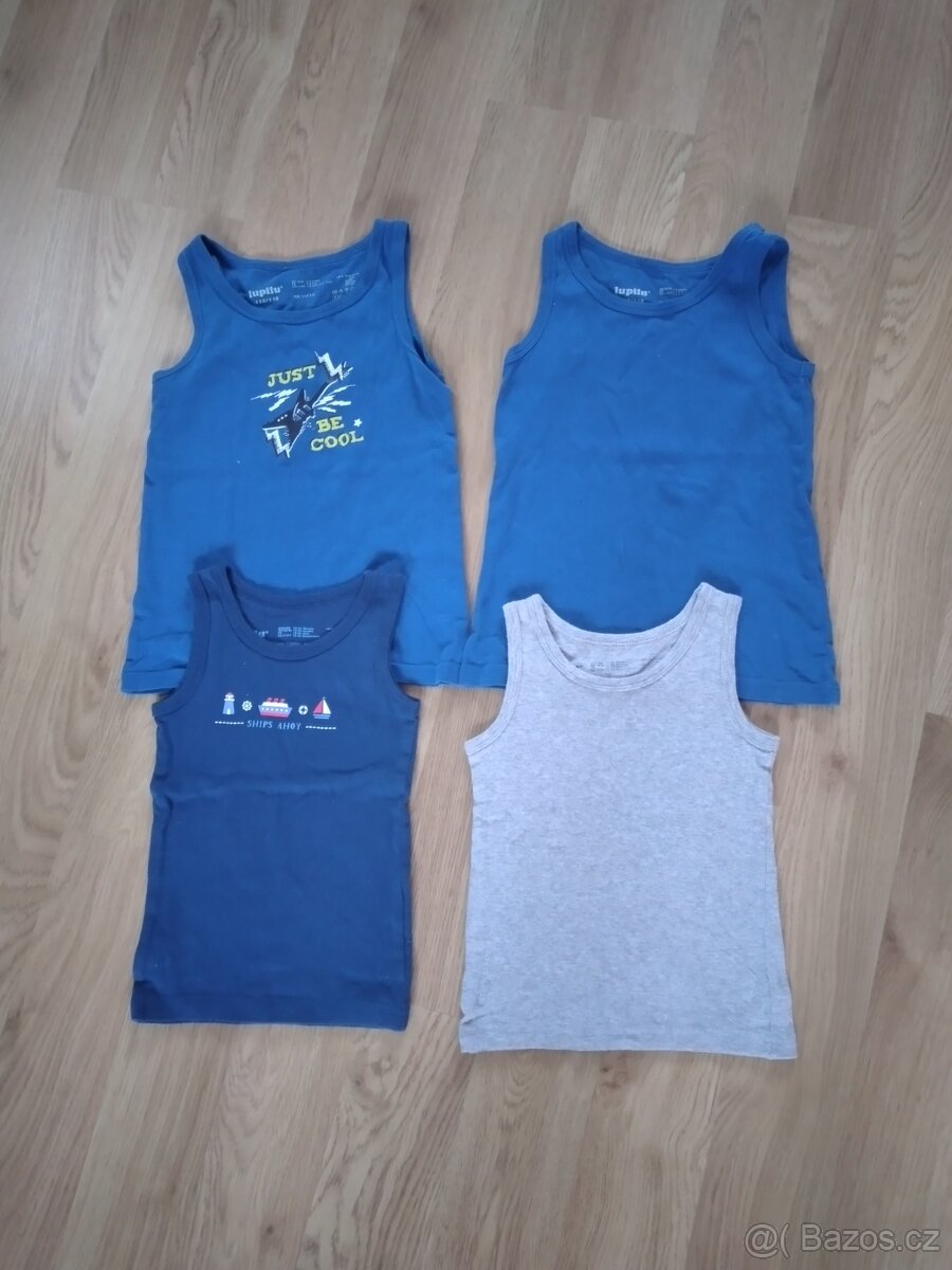 2x tílko vel.110/116 zn.Lupilu,š.28cm,d.38cm.Zachovalé,dohromady za 10Kč.2x tílko 92/98,š.22cm,d.38cm.Zachovalé,dohromady za 10Kč.