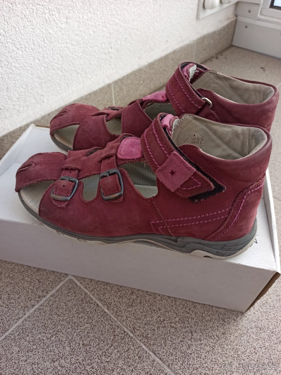 Prodám dětské (dívčí) zdravotní kožené sandály zn. Sázavan velikost 37. Nošené jeden školní rok jako přezůvky pouze ve škole. Venku nenošené. Reálný stav dle foto. č.24