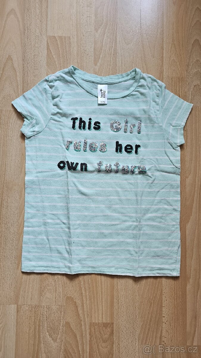 Dívčí triko 116/122 - [9.2. 2026]Dívčí triko Kik, 116/122. Délka rukávu od ramene 45 cm., délka rukávu pod průramky 36 cm., délka 47 cm., šířka 31 cm. Cena 40 kč.