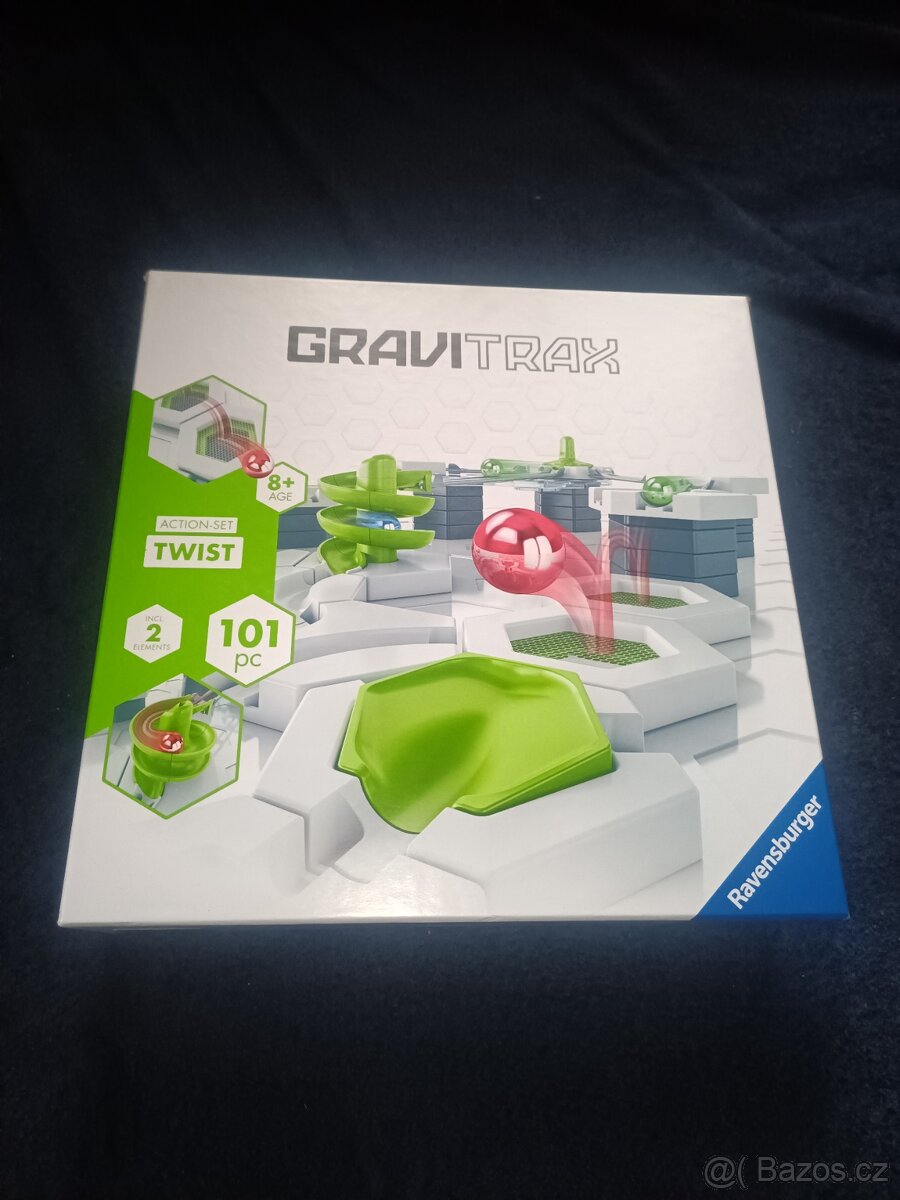 Gravitrax Twist od značky Ravensburger. Úplně nové, ještě zabalené. Vhodné tedy i jako dárek. Pořizovací cena přes 900 Kč. Nakonec nevyužijeme.
