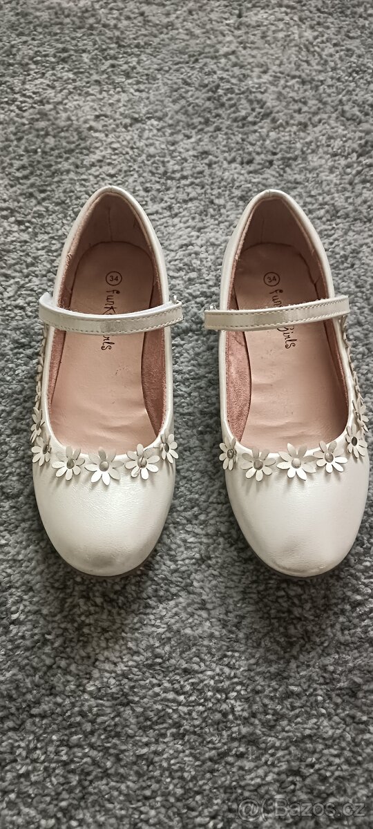 Dětská společenská obuv Funky girl - bílé. Koupeny v Humanic. Stále v záruční době (do července 2026). Nošené minimálně. Původní cena 899 Kč. Velikost 34. Osobní předání (Praha 6 či Praha 12), případně Zasilkovna (Balikovna).