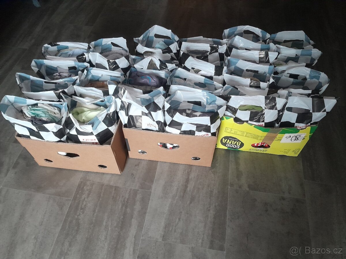 Nabízím 3 krabice dětského oblečení na přebrání. Roztříděno podle velikostí do jednotlivých tašek - velikosti 56-74.