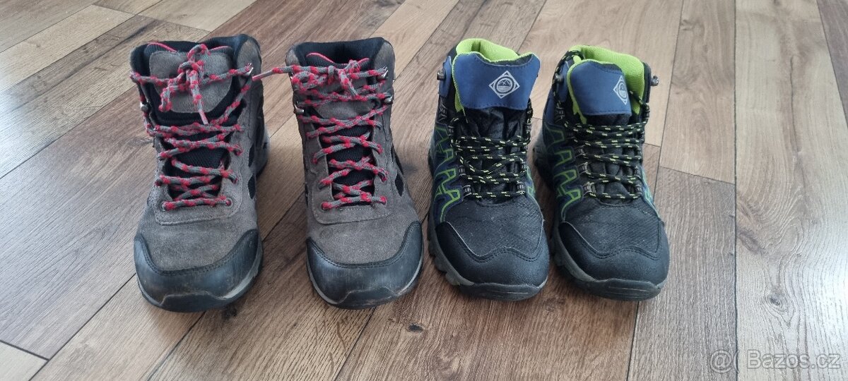 Trekové boty z Lidlu, černo-modné, velikost 35, waterproof, délka stélky 22,5 cm. Cena 150,--