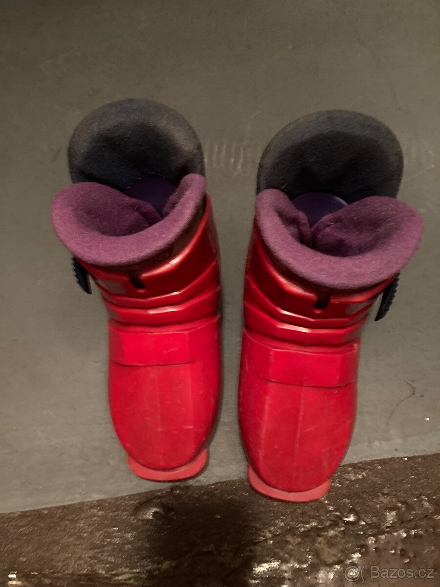 Dětské lyžařské boty - [23.12. 2025]Dětské lyžáky - přezkáče pro nejmenší lyžaře. Použité, ale plně funkční. Dvě přezky. Délka podrážky 24,8 cm. Možno poslat zásilkovou službou.