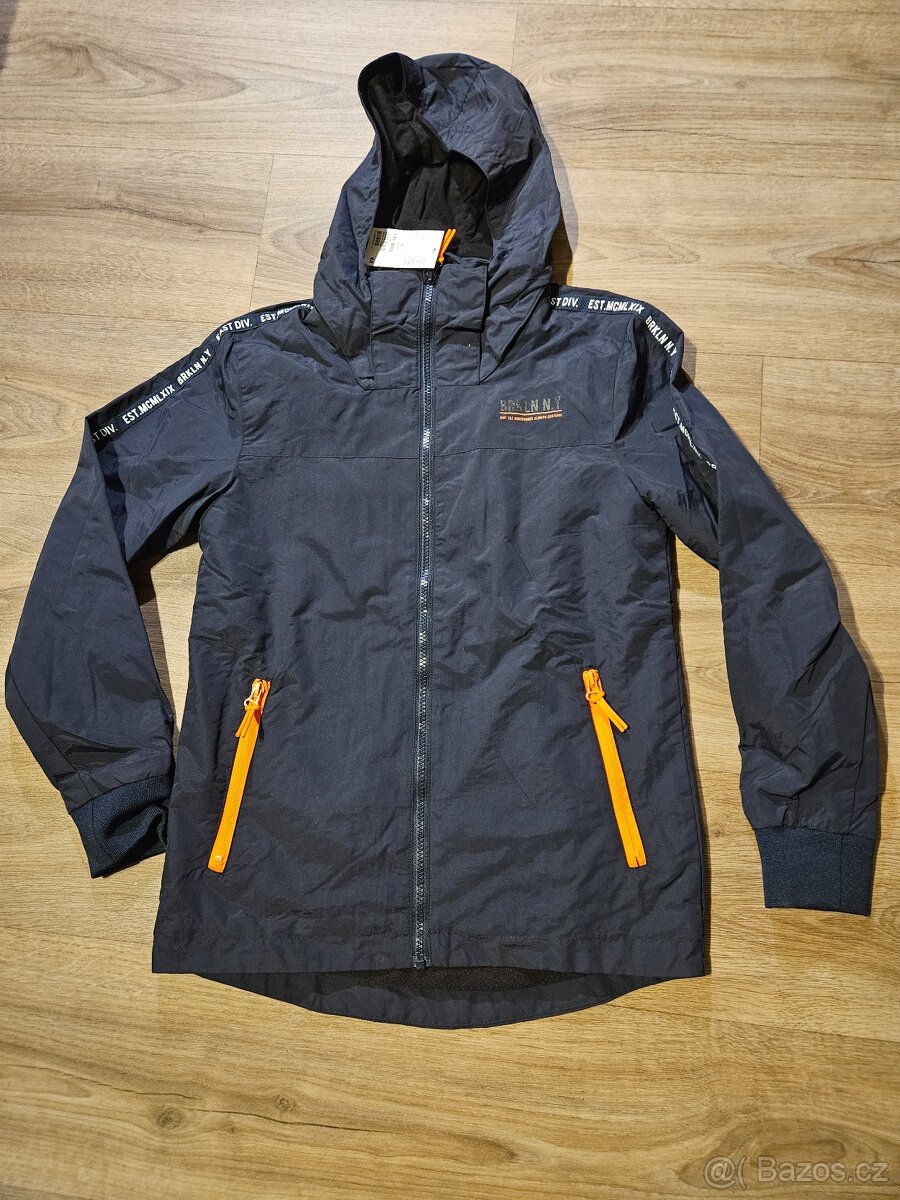 Dětská jarní/podzimní bunda velikost 140 - [10.2. 2026]Prodám dětskou bundu H&M, námořnická modrá & oranžové zipy