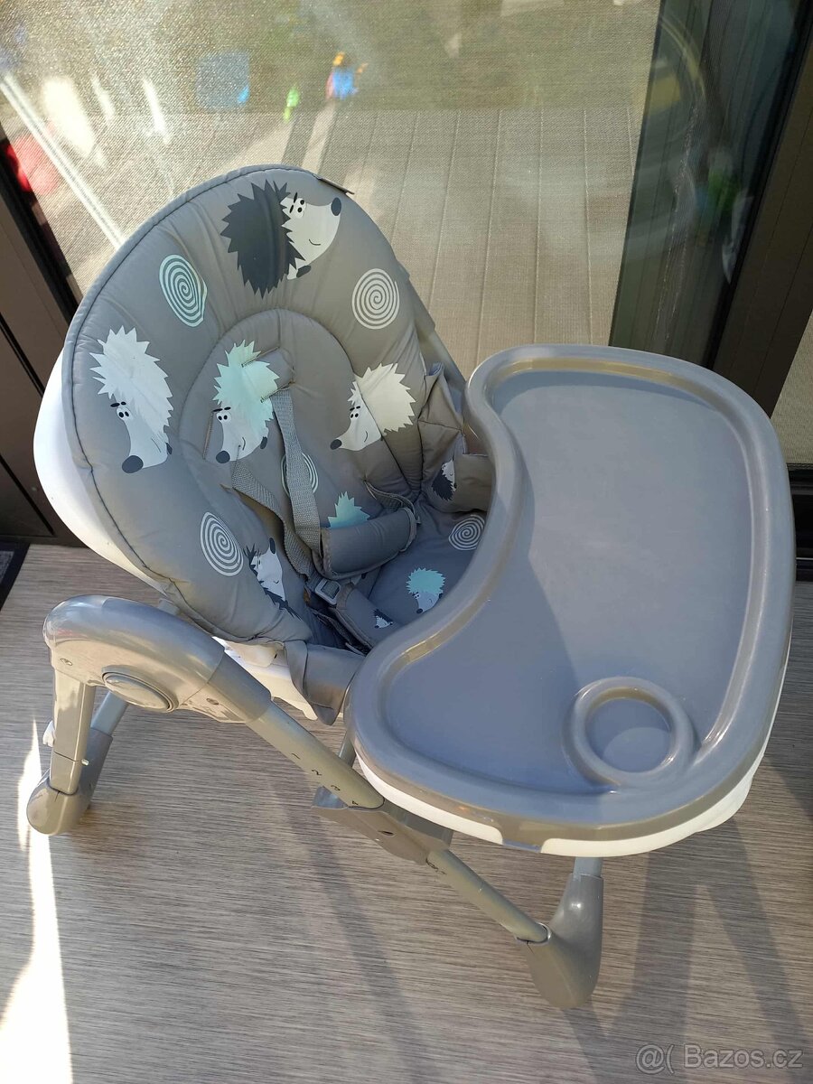 Prodám používanou jídelní židličku pro miminko BOMIMI. Vhodné od 6 měsíců do 15kg. 5bodový bezpečnostní pás. Opěrka zad nastavitelná do 5 pozic. Složitelná. Vzadu 2 kolečka. Natržené polstrování u pásů (viz foto).