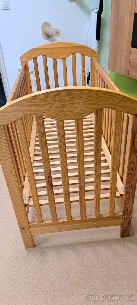 Prodám dětskou postýlku standardních rozměrů. Nese známky používání. Je bytelná, žádná tenká prkýnka. V případě zájmu daruji matraci. (Bohužel je na ní flek od džusu).