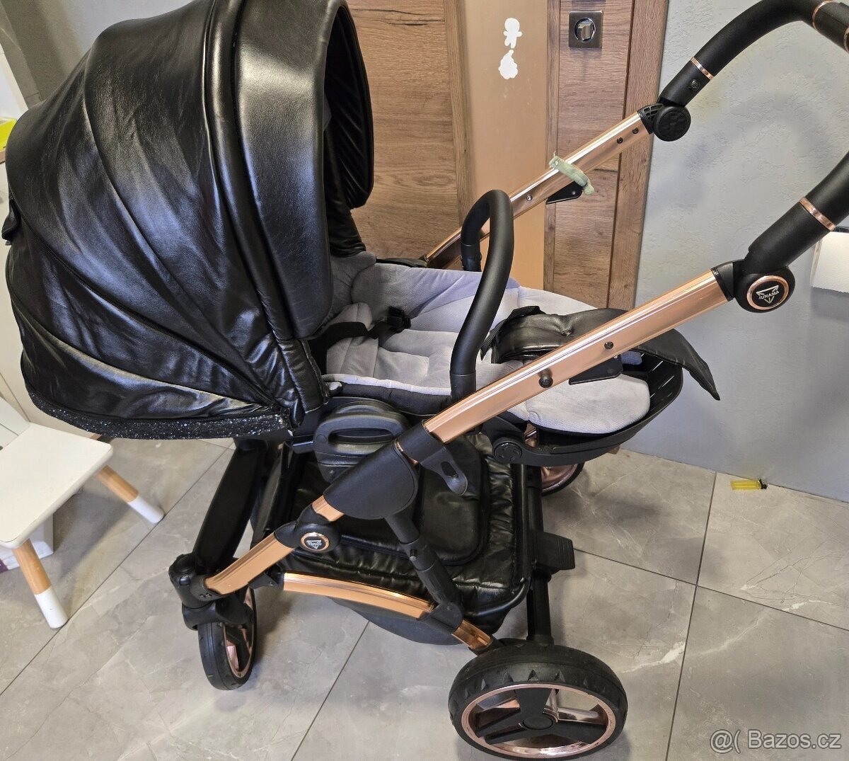 Kočárek 3v1, vše dle fotky, kromě autosedačky, která je v černé kombinaci s rosegold.