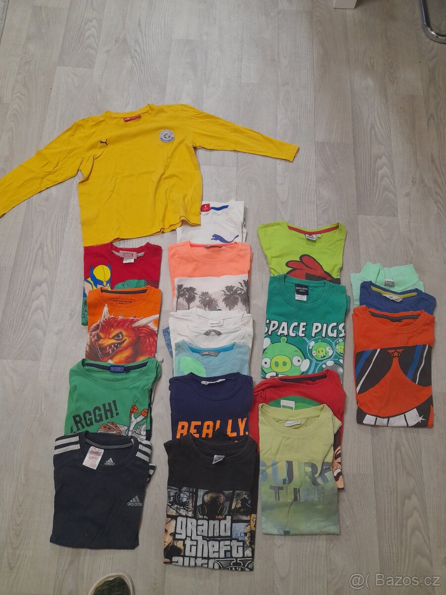 Nabízím chlapecké trička a jeden dlouhý rukáv cca 20ks velikosti 116-158.Různé značky -Puma,Adidas,Cocodrilo,H&M a další. Cena je 99Kč za vše.