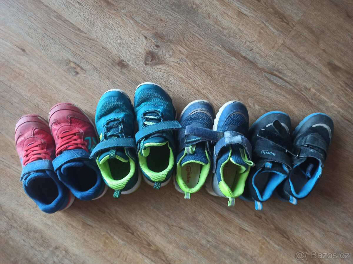 Nabízíme 4 páry dětských bot, dětských tenisek ve velikostech od 28 - 32. Cena dohodou. Nabízíme také několik párů dětských gumáků, několik párů dětských zimních bot a papučí (ve stejných / podobných velikostech). Mrkněte na naše další inzeráty.