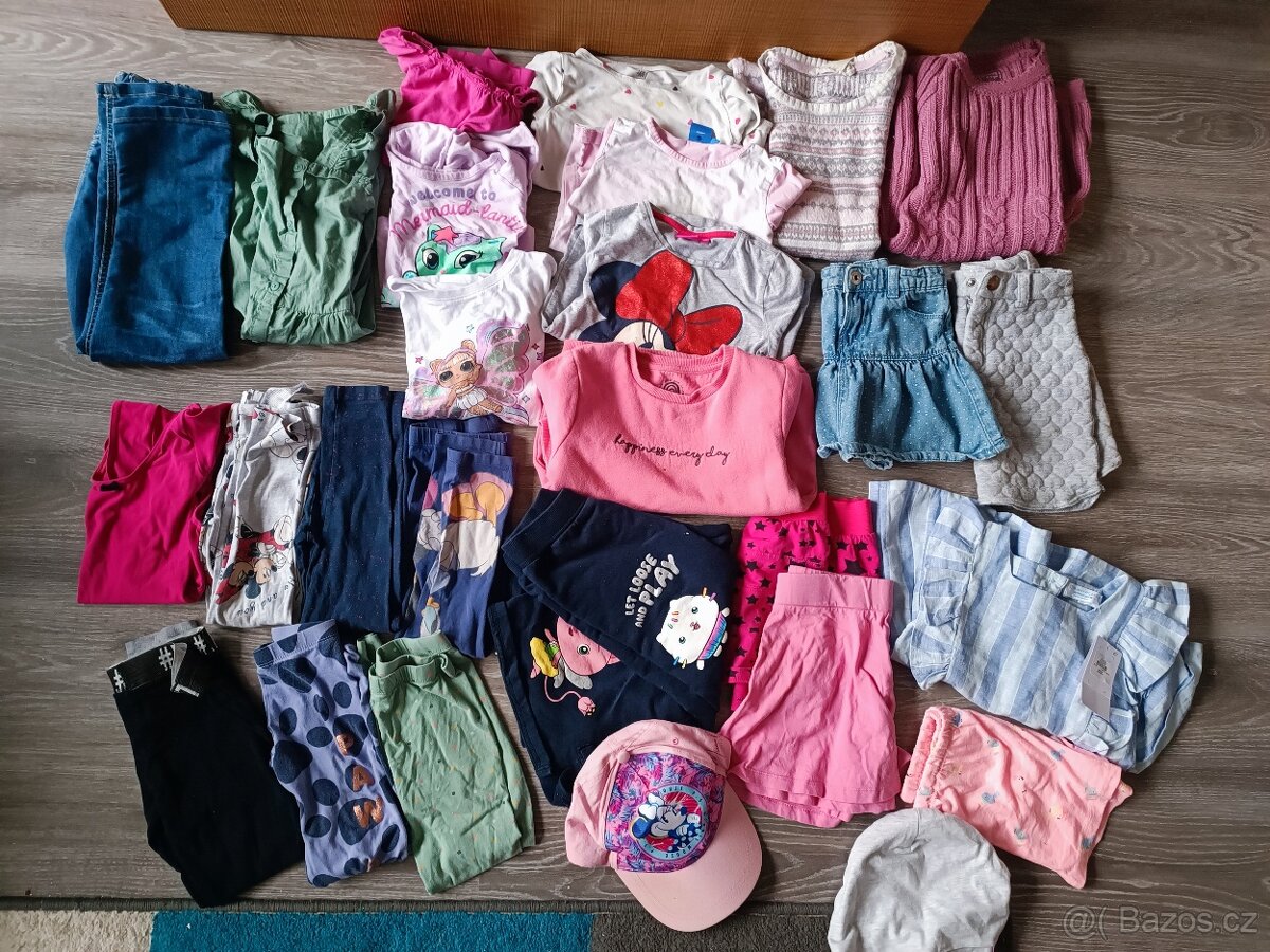 Balík oblečení pro holčičku cca 5 let, velikost oblečení většinou 110, něco 116. Legínky, trička s krátkým i dlouhým rukávem, tepláky, sukně, šaty, mikiny, svetry.. Nošený stav, něco lepší něco horší, včetně jedné úplně nové halenky. Do šlolky apod. ideální. Cena za vše na fotkách.