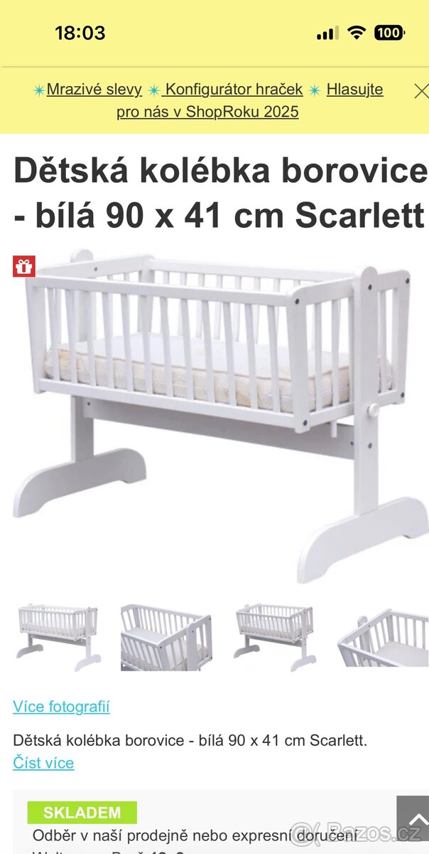 Prodám dřevěnou dětskou kolébku v bílé barvě.