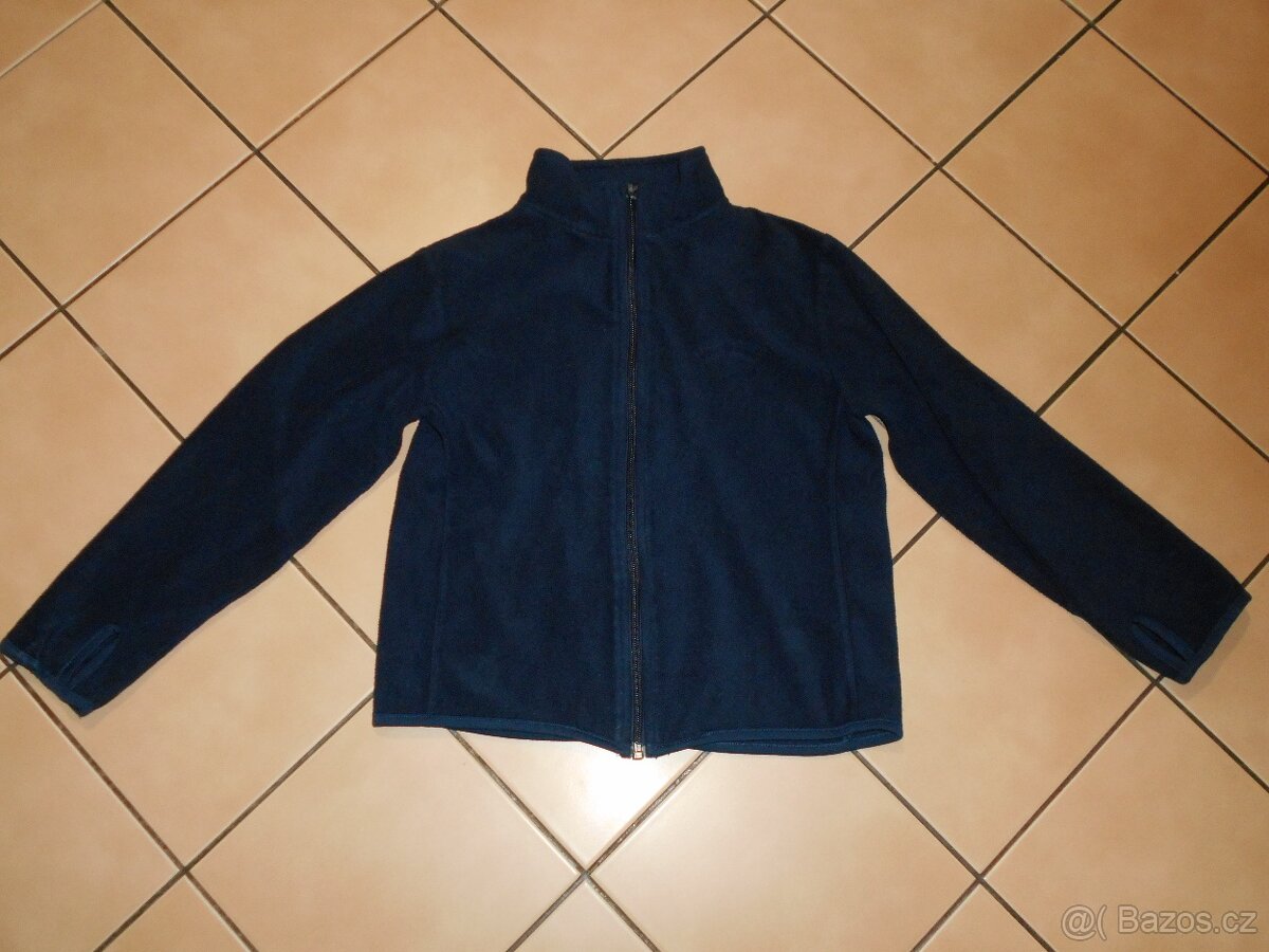Nabízím pro chlapce tmavě modrou flaušovou mikinu na vel.128(7-8 let), zn.H&M. Vepředu zapínání na zip, na rukávu dole otvor na palec, délka zad od krku dolů 46cm, délka rukávu od ramene 45cm, šíře přes hrudník 2x42cm. Mikina je pořád v pěkném stavu, jenom na jednom rukávu dole je zašitá dírka, nic hrozného.