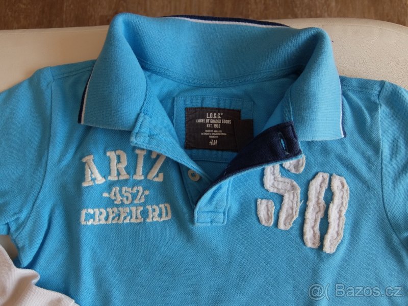 Prodám tyrkysové tričko s límečkem. Vel. 110/116, délka 50 cm, šířka 36 cm.