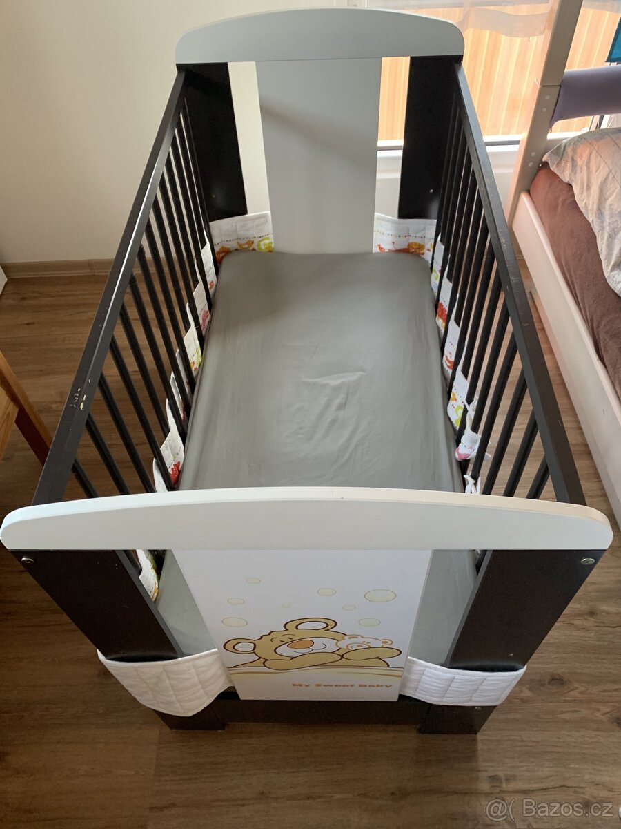 Prodám starší dětskou postýlku, včetně matrace. Rošt velikost 120x60 cm. Rošt lze umístit do tří různých poloh. Pár škrábanců, které nemají vliv na funkci, ještě někomu udělá třeba na chatě službu. Jedno prasklé prkno v roštu, které jsme již nestihli vyměnit, ale taky nemělo vliv na spaní.