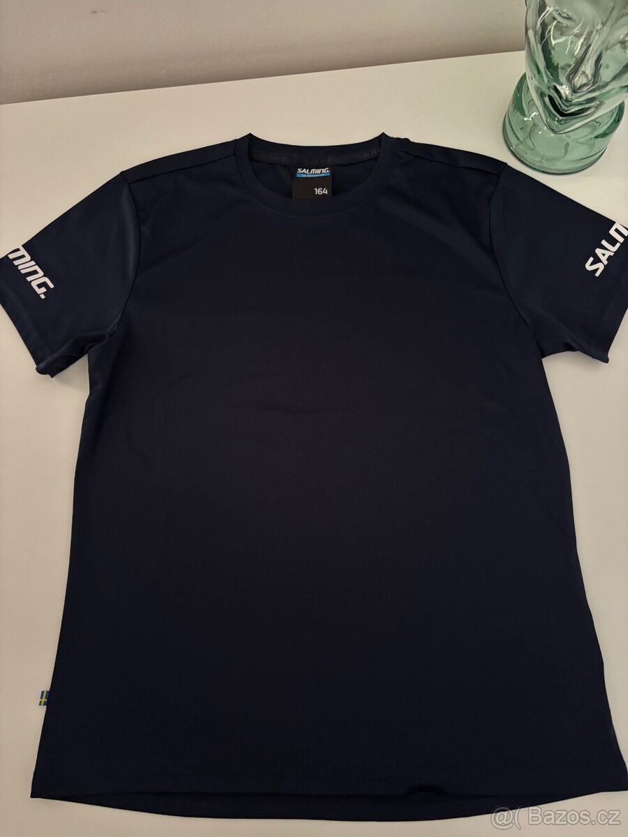 Nabízím k prodeji tréninkové triko z funkčního materiálu Salming Core 22 Training Tee ve tmavě modré variantě ve velikosti 164. Na tričku je natisknuté logo na obou rukávech a na zadní straně ve spodní části, triko tak poskytuje prostor pro případný potisk. Rozměry - průramky: 44 cm, délka zad: 61 cm. Na dobírku nezasílám. Osobní odběr, popř. zaslání po zaplacení předem na účet. Poštovné a balné: 75,- Kč balíkovna a 89,- Kč zásilkovna.