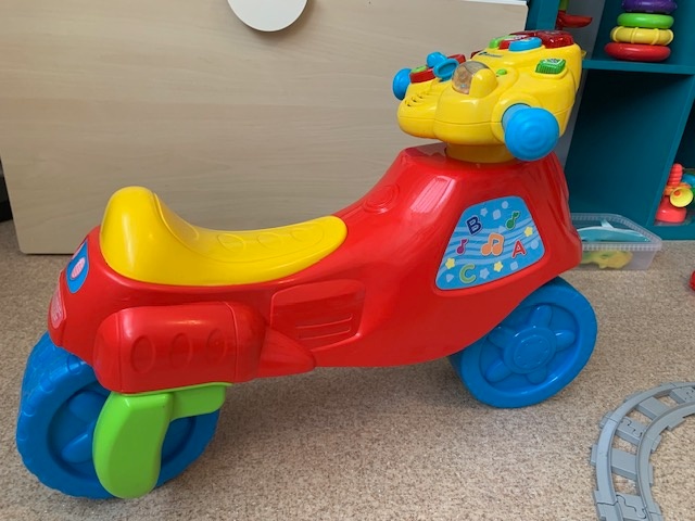 Prodám odrážedlo TOP stav. Plastová kolečka, proto bylo použito jen doma. Koupeno v Německu za 50 EUR. Na volantu je umístěný hudební box. Je nízké. Doporučuji pro drobné dítě.