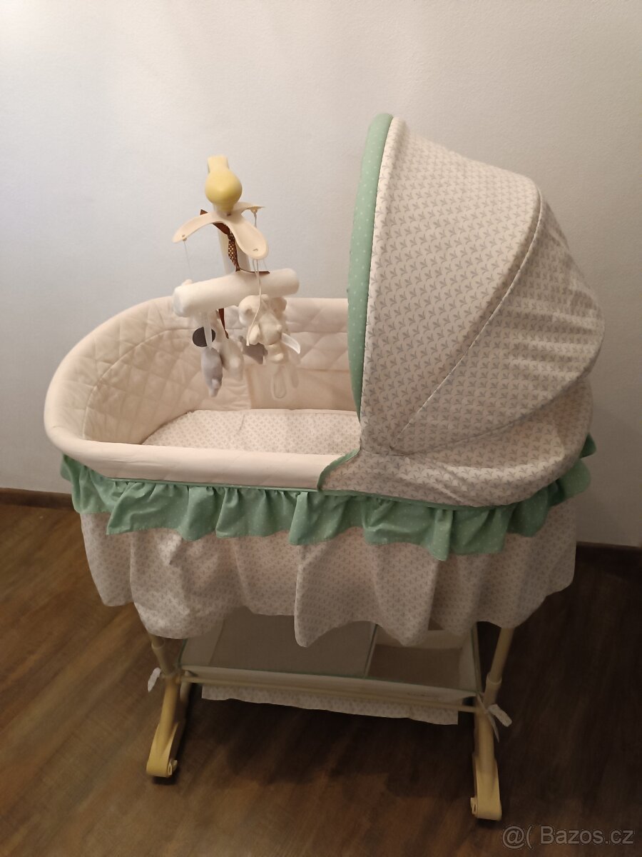 Prodám multifunkční kolébku na kolečkách, vše funkční vibrace, světlo, kolotoč a melodie.