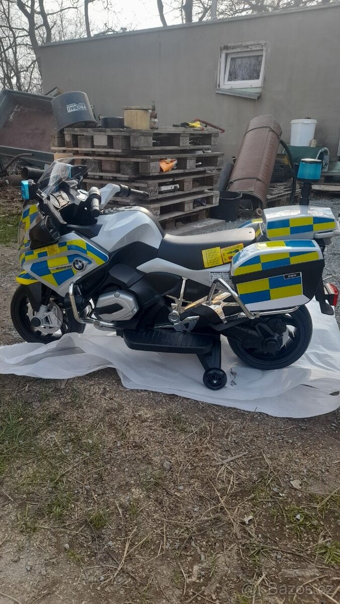Dětská elektrická motorka BMW - [14.1. 2026]Dětská elektrická motorka BMW R 1200 RT s policejními majáky, EVA koly, LED osvětlením, vzor Česká policie, stříbrná